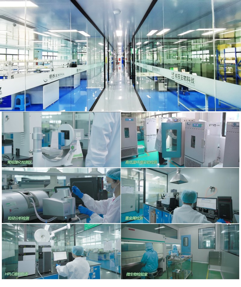 Profesionálne testovacie centrum s rozlohou takmer 2 000 metrov štvorcových je zriadené v prísnom súlade s medzinárodnou normou ISO 17025 s jasným funkčným rozdelením a vedeckým usporiadaním. Zahŕňa tri základné laboratóriá – mikrobiologické laboratórium, fyzikálne a chemické laboratórium a laboratórium kozmetickej účinnosti – ktoré plne pokrývajú rôzne potreby testovania, ako je biologická detekcia, fyzikálna a chemická analýza a hodnotenie kozmetickej účinnosti.